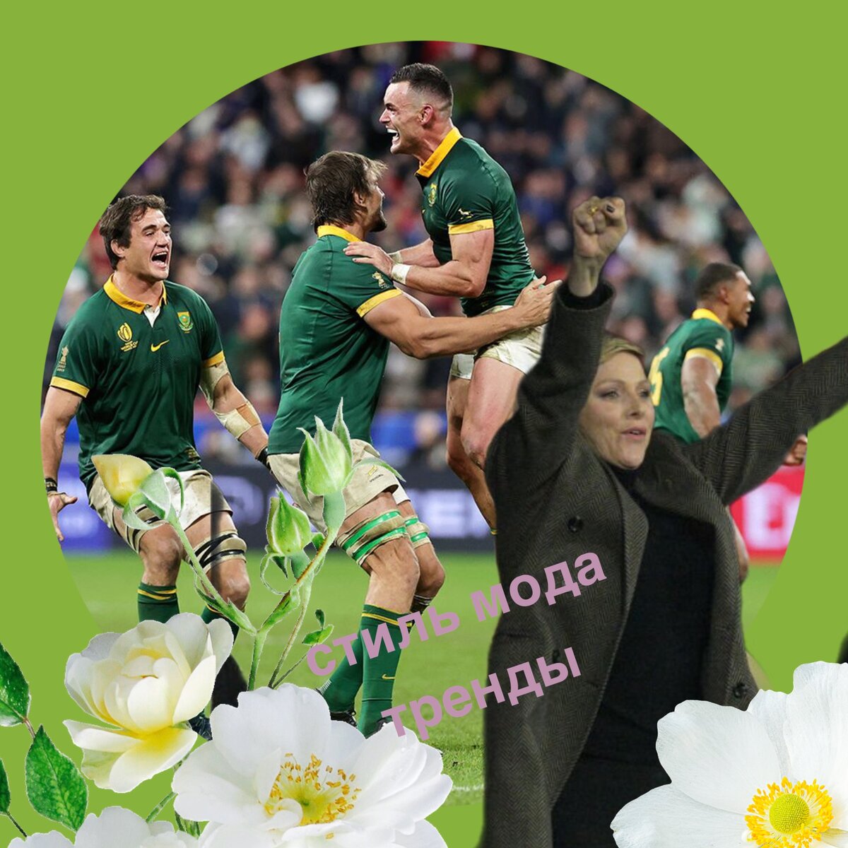 Историческая победа Южной Африки, родины принцессы Шарлен. После матча Шарлен и Альбер спустились в раздевалку к спортсменам, а затем устроили роскошную вечеринку в честь спортсменов в парижском ресторане.