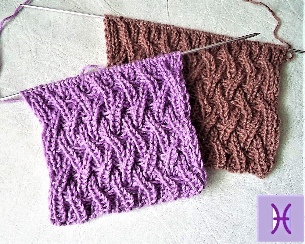 В превеликом множестве различных узоров большое место занимают узоры с различными переплетениями. Вот один из подобных узоров. В этом узоре линии переплетаются по диагонали. Получается очень интересный рисунок. Хоть узор и не ажурный, но вполне подойдет для вязания летних изделий. Прекрасно подойдет этот узор для вязания предметов для уюта в доме - пледов, подушек. Хочу попробовать связать этим узором детский пледик. Описание вязания узора: Раппорт узора равен 12 петлям по ширине узора и 12 рядам по высоте вязания. Количество петель в наборе должно быть кратно 12 плюс 3 петли для симметрии плюс 2 кромочные петли. 1-й ряд: кромочная, * 1 изнаночная, 1 лицевая, 1 изнаночная* кромочная 2-й ряд и все четные ряды: вяжутся по рисунку вязки 3-й ряд: вяжется, как 1-й ряд 5-й ряд: кромочная, * 6 петель перекрестить влево ( первые 3 петли перекинуть на дополнительную спицу перед работой, провязать 4-ю изнаночной, 5-ю лицевой, 6-ю изнаночной, затем провязать петли с дополнительной спицы - 1-ю изн
