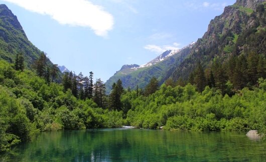 Домбай. Бадукские озёра. Домбай — это курортный посёлок, расположенный в Карачаево-Черкесии, на юге России. Этот живописный уголок природы славится своими величественными горами, пышной флорой и лечебными источниками. Одной из самых примечательных достопримечательностей в этом регионе являются Бадукские озёра. Бадукские озёра представляют собой цепочку из трёх горных озёр, расположенных на высоте около 2500 метров над уровнем моря. Название озёр происходит от особенности их формы — они напоминают азбуковые буквы Б, А и Д. Озеро «Б» считается самым большим и глубоким, оно способно принять в себя более 4 млн кубических метров воды. Озера окружены высокими горами, на вершинах которых до сих пор сохранены снегири и вечные ледники, создавая удивительный пейзаж. Природные красоты Бадукских озёр притягивают к себе множество туристов, как из России, так и из-за рубежа. Многие приезжают сюда, чтобы насладиться сказочными видами, подышать свежим горным воздухом и прогуляться по высокогорным троп