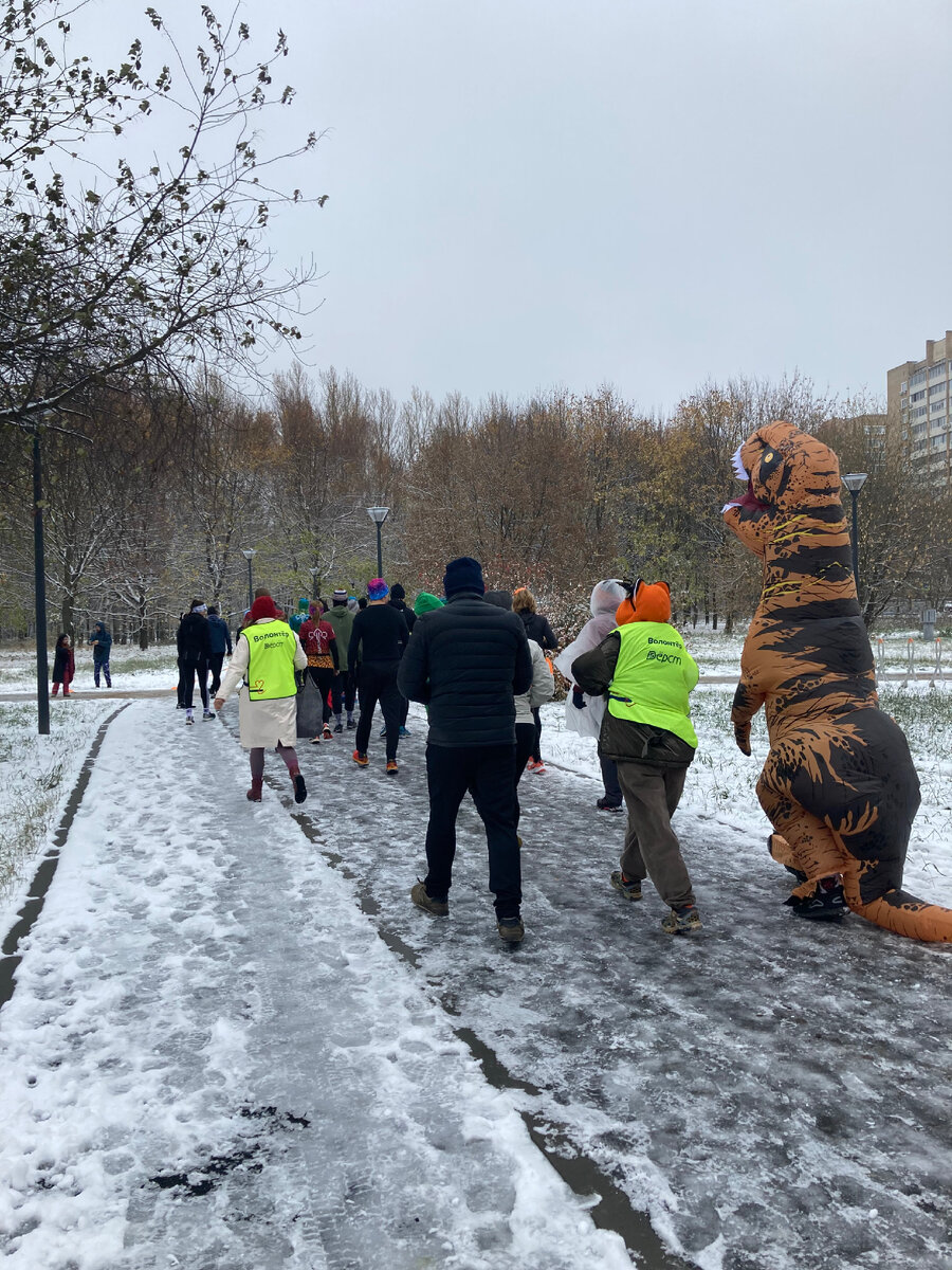 Суббота. Утро. 7:35. Звонит будильник. Пытаюсь вспомнить почему и зачем. Ведь сегодня выходной. Вспоминаю. Недели две назад были совсем другие планы. Нашла себе забег в Тучково - 4 км по холмам. Думала, раз не могу бегать долго и медленно без боли, то стоит попробовать себя в тренировках на средние дистанции. Хотелось «тошнить» и высокий пульс. Потом побегала в компании пару раз и вспомнила как оно бывает. Немного вбегалась. Поняла, что все-таки я очень люблю страдать, но долго. Снова начала бегать нормально и на забег в Тучково не поехала. Слишком маленький километраж. Так я решилась сбегать до соседей на 5 верст. Пришлось идти завтракать и собираться. До точки старта 8 км. Немного не учла светофоры по пути и прибежала в 8:59:30. Думала, что придется стартовать сразу. Но начало отложили на три минуты. Вместо паузы поставила отсечку интервала, а на старте нажала на паузу. Это я поняла уже на финише, когда увидела паузу на часах😀 Спутала всё впопыхах. Трасса: недавно обновили маршр