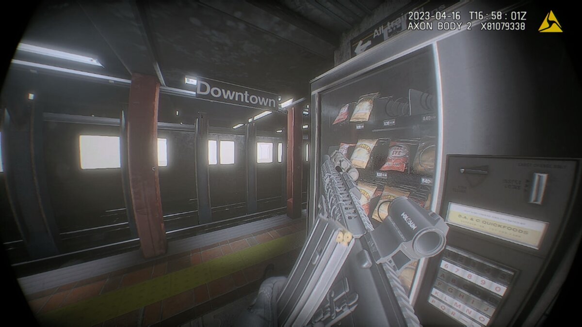 Сокол: Снимаюсь. Виднелись турникеты и выход на поверхность. На станции стояла гробовая тишина. Рилс занял позицию за углом, чтобы видеть выход на улицу и турникеты. Группа продолжила досмотр станции. С улицы внезапно влетел раненый п