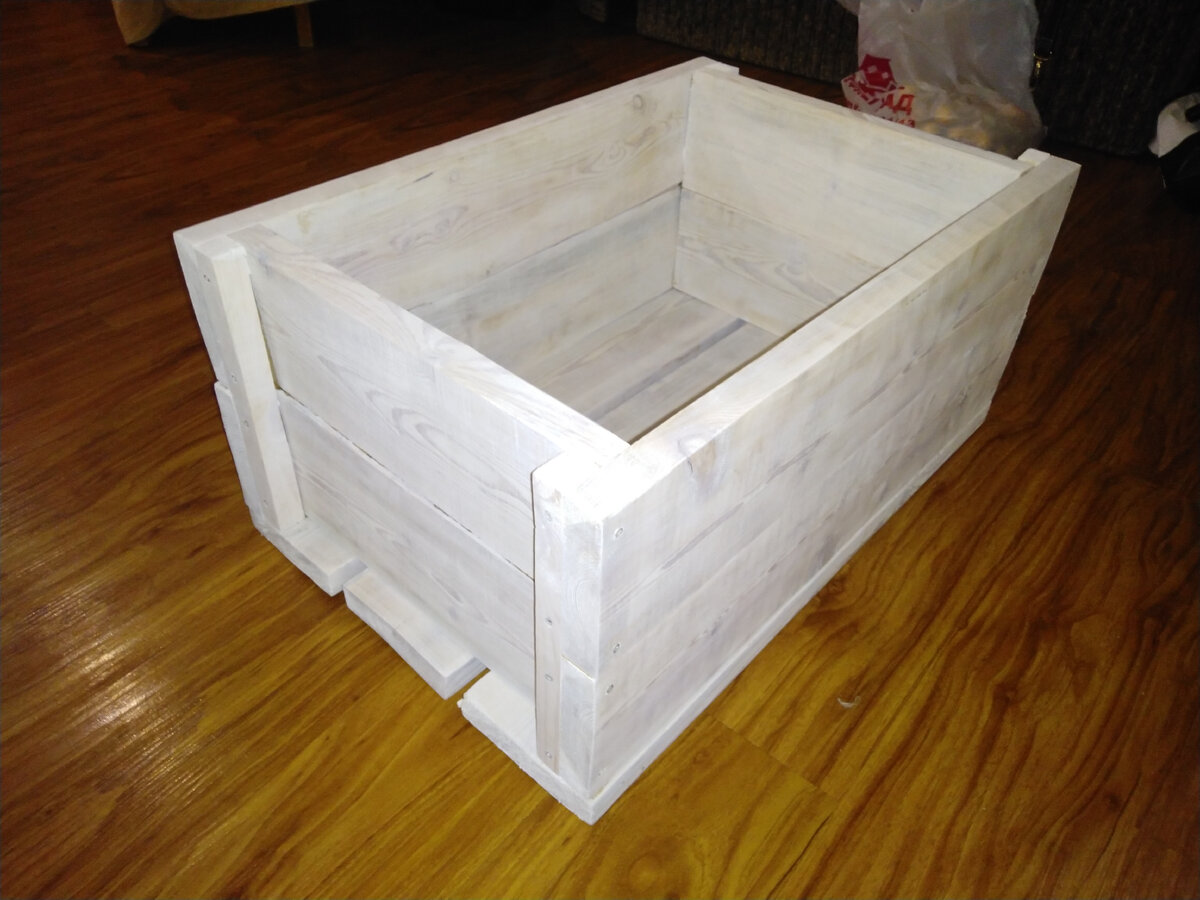 Собрал вот такой ящик для хранения моих виниловых пластинок. Ни чего сложного. Из материалов: Доска 120х25 мм, брусок 30х30, саморезы, краска. Ширина конверта пластинки 32-33 см. поэтому ширину ящика по внутреннему размеру сделал в 35 см., длинна 60 см. Этого вполне хватило чтобы вместить всю мою коллекцию из 100 пластинок. Дерево пред окраской шлифанул наждачкой.