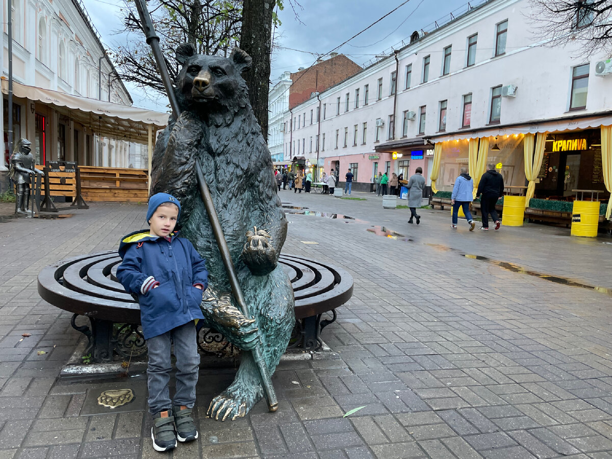 Рядом с кафе стоит необычный памятник символу города медведю. Почему необычный?