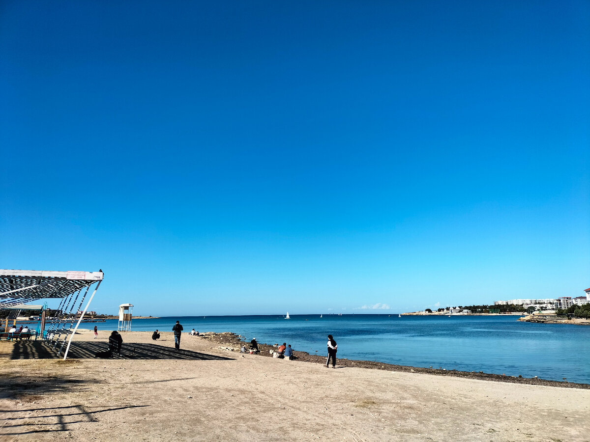 Обычный воскресный день в Крыму, 29 октября. Вот почему именно на выходные дни в большинстве случаев выпадает такая погода? Происходит именно так и это воскресенье не исключение. Хотя надо признать и остальные дни были тёплыми и температура днём держится выше +20. Не было сегодня времени на прогулки у моря. С утра на рынок, а потом... в общем по разным делам и возле моря только рядом пройтись получилось. Свернул на пять минут постоять покурить и сделал немного фото у бухты Омега. Особенности осени в Крыму - прогулки у моря и что одевать? Футболку или куртку? Люди неспеша прогуливаются, дети играют на берегу. Сегодня погода безветренная и на море штиль, а в тихой бухте вобще гладкая вода Ооо Ждём, когда на зимовку прилетят лебеди. Они каждый год зимуют в севастопольских бухтах, но сейчас пока только утки. Впрочем и их можно кормить, что и делают живущие рядом люди. Берут на прогулку кусочек хлеба, кусочки которого можно покидать в воду птицам. Вы только посмотрите.. неба синь! Ни обла