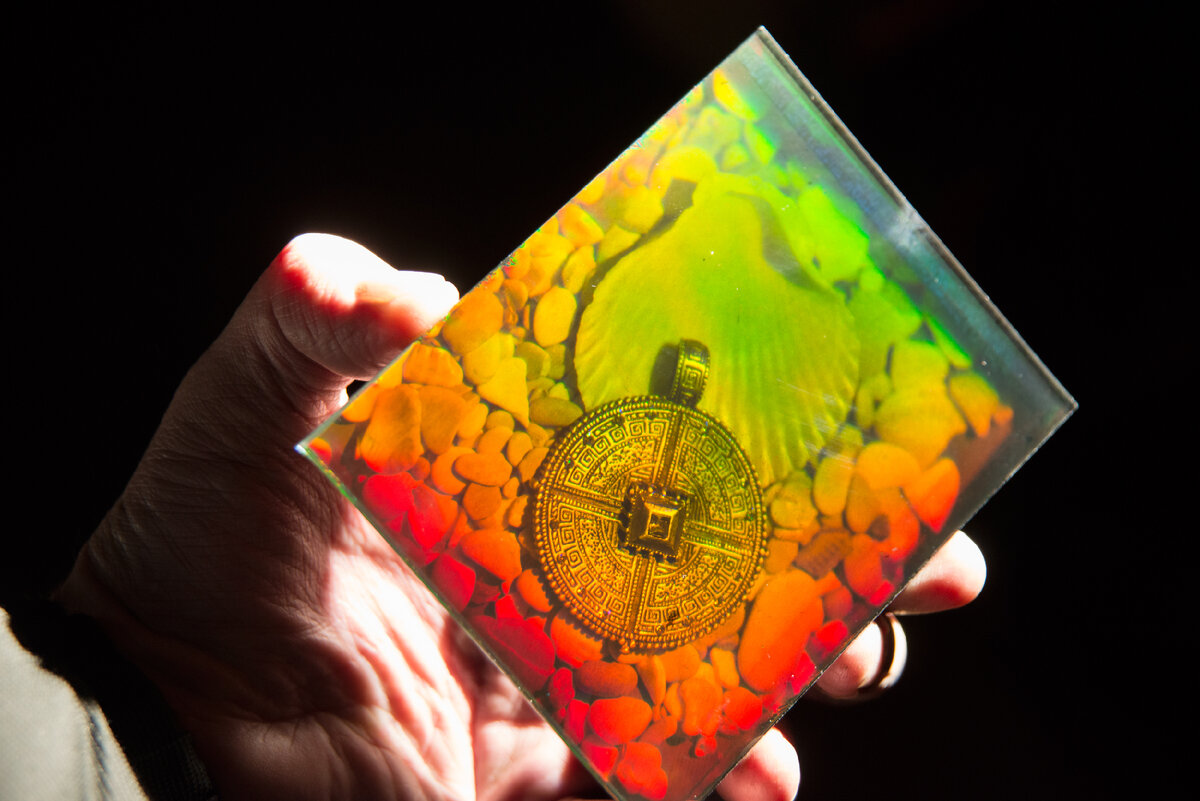 - рельефные голограммы формируют изображение за счет изменения высоты микрорельефа поверхности голограммы;