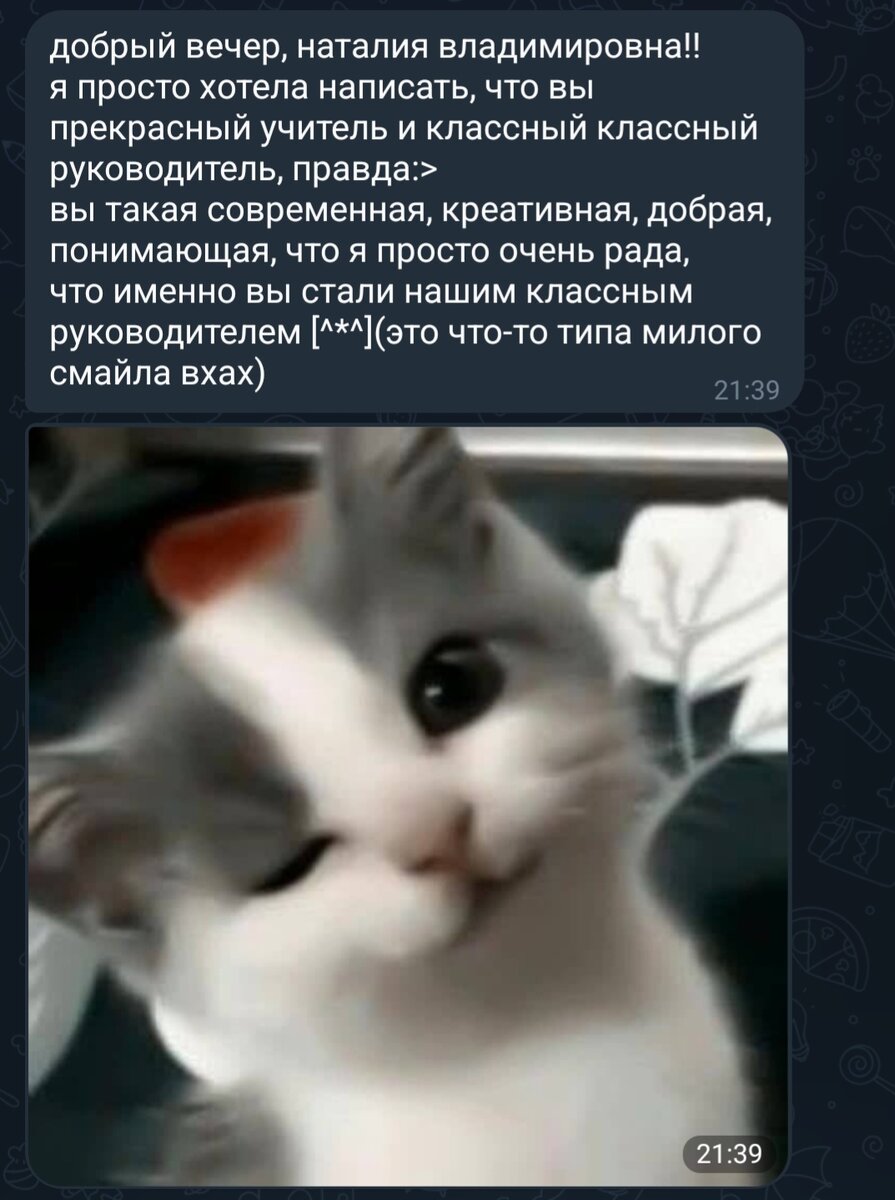 Мне очень страшно это делать. С одной стороны, все-все-все делятся хвалебными отзывами о своей работе. С другой, а вдруг ученики обидятся, хоть я и скрыла имена? Получать такие сообщения для меня огромная радость. Ребята, спасибо большое! Ваши слова поддержки вдохновляют на работу и помогают верить и в себя, и в наше дело ❤ Что же, хвастаюсь: Во мне нуждаются, выходит 🥲 Когда ребята хотят в мою физмат группу: (Технологический класс и есть физматовский класс.) После экзаменов пишут выпускники: И уже студенты: