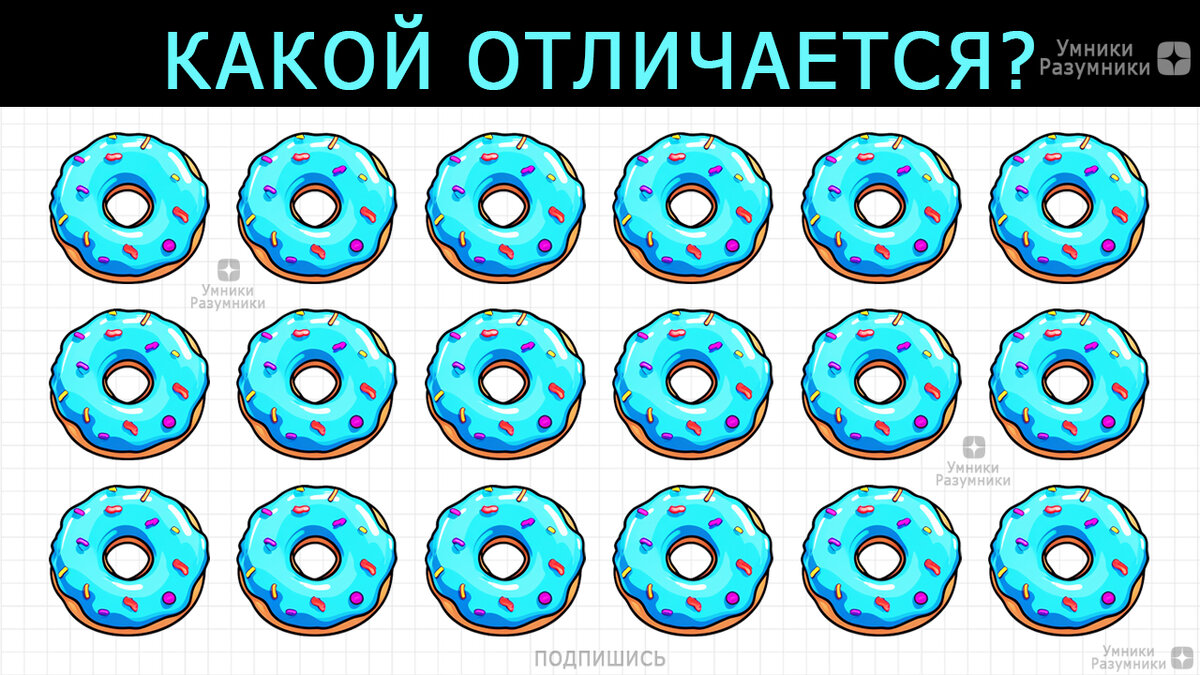 Приветствуем всех гостей и читателей нашего канала 👋 Предлагаем выполнить занимательную подборку заданий для приятного досуга 😉 Давайте же приступим ✌️ 1. Найди один 🍩 с отличием 2. Какое из чисел отличается? Среди чисел "30486", есть только одно лишнее. Попробуйте найти его. Что это за число и в каком ряду оно находится? 3. Какая 🍵 отличается? Рекомендуем также несколько наших прошлых выпусков: