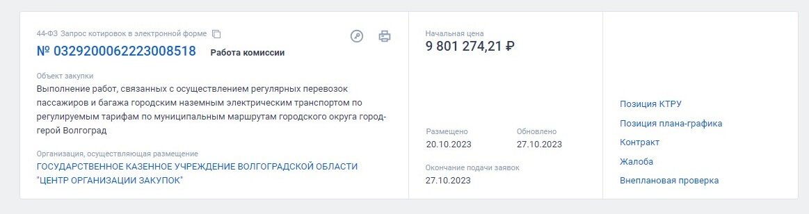 Стоимость двухмесячной перевозки волгоградцев по троллейбусному маршруту №15а Больничный Комплекс - Пл. Куйбышева обойдётся городскому бюджету в 9 801 274,21 руб. На данный момент комиссия рассматривает поданные заявки и в ближайшее время должна объявить победителя аукциона, то есть – исполнителя контракта.
