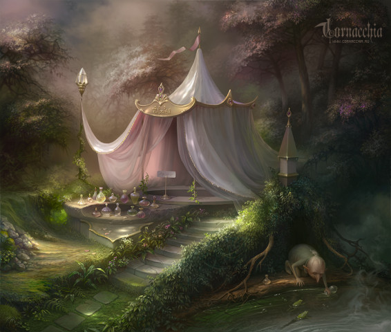 Тихо в лесу, только звучат птичьи трели да иногда проносится шорох от ветерка. И вдруг... Что это? Откуда? Целый отряд эльфов бесшумно движется по лесу. Эльфы - дети леса и заметить их если они того не хотят невозможно. - Стой! Привал! - отдает приказ командир отряда, старый эльф Победитэль. - Коней на водопой, развернуть шатер ее высочества! Ее высочество, наследная принцесса Нюниэль, предпочитала передвигаться не с отрядом грубых солдафонов, как говорила принцесса, а в гордом одиночестве, в сопровождении всего двух десятков охранников и ожидалась на месте привала несколько позже. - Мужики, разгружай шатер! - скомандовал главный квартирмейстер Домоправитэль. - Мужики по деревням сидят, - раздался голос кого-то из воинов. - Ах, простите, пожалуйста, благородные эльфы, не будете ли вы так любезны разгрузить шатер принцессы. - Сразу бы так, - раздался тот же голос. - Коротко и ясно. Эльфы с трудом вытащили огромный центральный столб шатра и сам шатер. Походное обиталище принцессы занимал