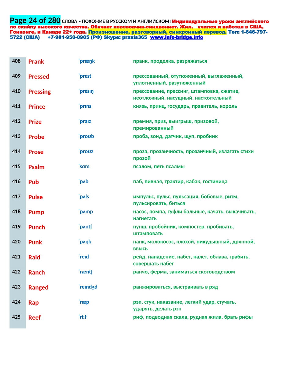 24 Сраница Похожих Слова в Английском и Русском