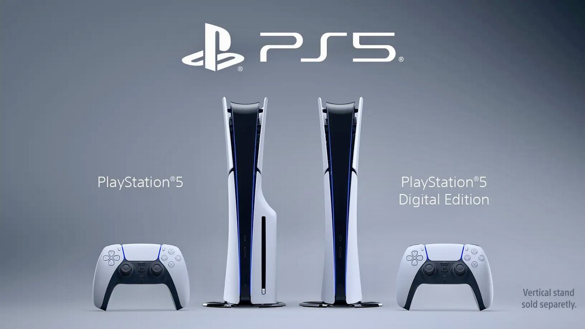 • PS5 без дисковода: 358х80х216 мм, 2,6 кг Новая модель оснащается накопителем объёмом 1 ТБ. Консоль поступит в продажу в ноябре 2023 года. Стоимость обновленной PS5 с дисководом Ultra HD Blu-ray составляет $500, а Digital-версии — $450.
