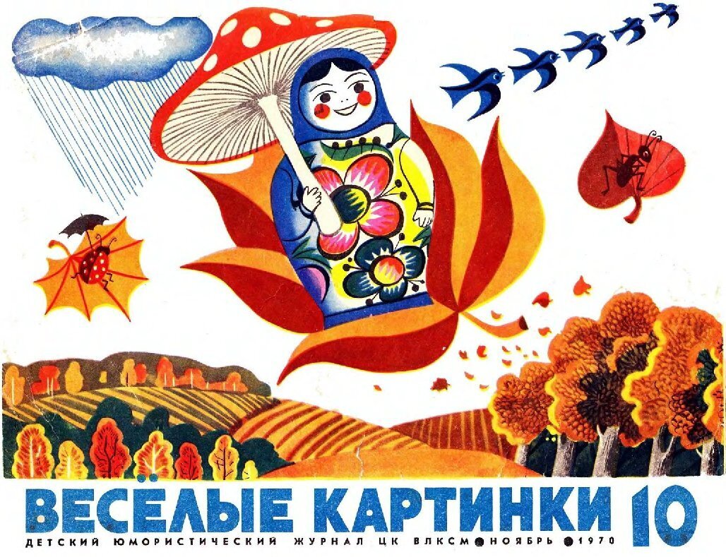Вот и снова пролетел месяц, уже октябрь, ого! Пришло время для очередного выпуска детского юмористического журнала. Дожди, ветра и матрешка стремящаяся на юг, вместе с перелетными птицами. Снова рубрика детских рисунков. Конечно самолет мне очень понравился. Хороший рисунок. Как вам идея с приклеиванием семечек обратно в подсолнух? Слон и мартышки. Интересная компания. Узнали кто живет в последнем доме? Волк и семеро козлят. Какая жизнь у козлят иллюзорная. А вы приметили волка на тучке, с большим красным носом? Очередная масштабная картина. Можно увлекательно попутешествовать по осеннему лесу. Рассказ про рыбку с трубкой мне весьма понравился, что-то на грани с научной фантастикой. Петя лыжник, галоши, матрешка и зонт. Ничего непонятно, но очень интересно. Масштабная фотосъемка доктора с пациентами. Кого там только нет. Слон дома, легко! Всем бы такую фантазию. Узнали как зовут девочку с яблоками? Вообще могу отметить, что рисунки в журнале стали симпатичнее чем в предыдущих выпусках