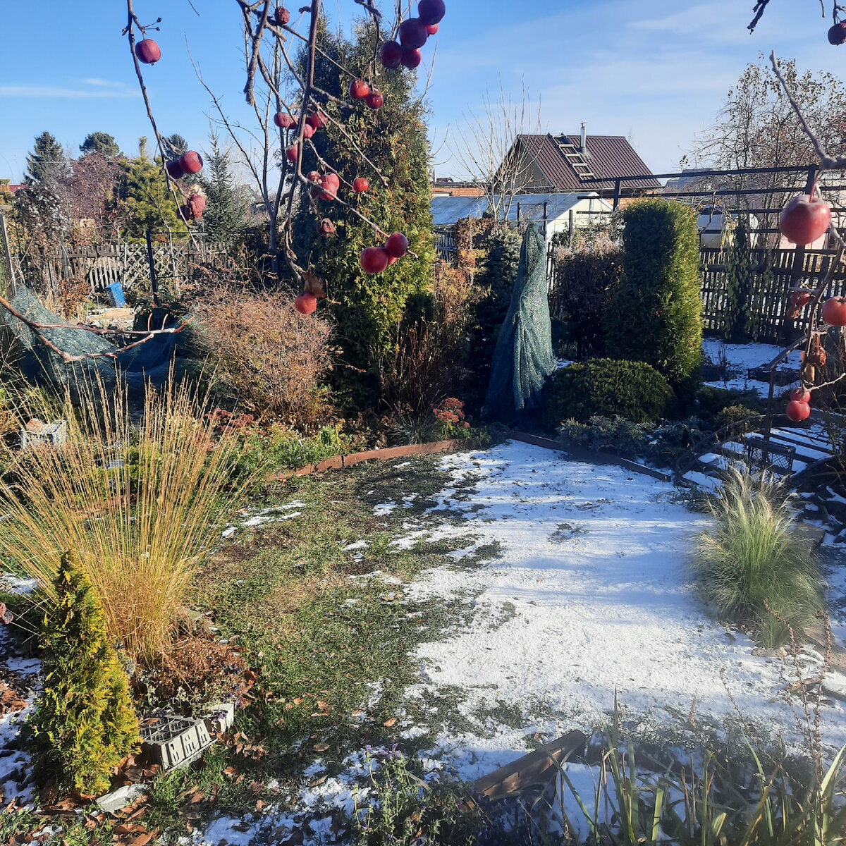 Чип и Дейл спешили на помощь нимфеям... Вернее Чип спешил, а Дейл вел машину и тихо матерился🤣 И, как всегда бывает, когда в одном месте сходятся: Чип без фотоаппарата и Дейл на машине, перед машиной, прям у ворот сада бегали стаей куропатки. Стаей. Медленно. Перед машиной. Не торопясь. Туда и обратно.. Прочувствовали верх цинизма и глумежа надо мной? Я этих куропаток, когда одна, як лиса выслеживаю, чтоб зафоткать... и не получается!! Сад снова ржал. Честно говорю, они хихикали оба, что сад, что Дейл😁🤣 Снег почти испарился. Ощущение, что хейрантус решил доцвести, выйдя из анабиоза. Это ж какой зверь то интересный, скажу я вам. Нимфеи, злаки, летние луковичные (с нежданно подаренной каллой), банки с краской были эвакуированы. Подзимние посевы закончены. Да, все выглядит неряшливо. Но, во-первых, снегозадержание и самоутепление никто не отменял. А, во-вторых, мне проще весной радостно в пару заходов все убрать. Я четко знаю, что идеальной чистоты не будет у меня. Я к ней и не стрем