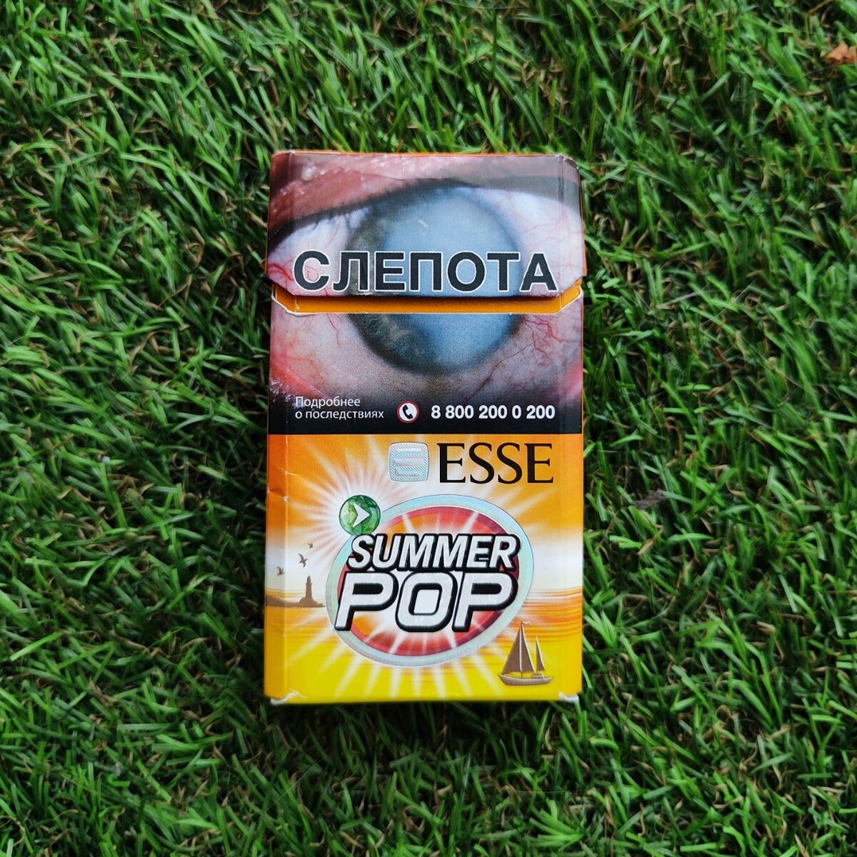 Не так давно я уже писал про очень интересные и высокотехнологичные сигареты от Esse - Sense Himalaya. Сегодня поговорим про другой продукт компании - Esse Summer POP. Summer POP - сигареты формата demi, импортные, изготавливаются корейской компанией "KT&G". Это подтверждает и импортный акциз на пачке. Цена за пачку - всего 150 руб., что в современных реалиях соответствует цене арбузного Морриса (а это та ещё шляпа). Himalaya смогли меня впечатлить, поэтому на героя данной статьи возлагаю большие надежды. Получился ли Summer POP таким же интересным как его "зимний собрат " Himalaya? Проверим! Автор не пропагандирует курение, а статья основана на личных впечатлениях. И помните, что курение вредит Вашему здоровью! 🧧 Дизайн пачки и сигарет 💠 Пачка Хочется попросить прощение за непрезентабельный вид пачки в данном обзоре, мы с ней попали под дождь( От внешнего вида пачки так и веет летом. Оранжево-желтая палитра цветов, море, парусники, шезлонги, пальмы и пляжи - кажется, что дизайнеры р