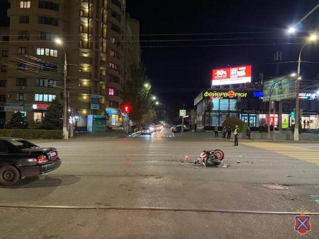 В центре Волгограда на видео попало жёсткое столкновение мотоцикла с иномаркой