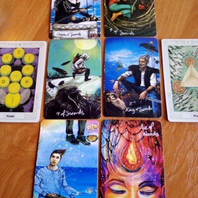 У Львов обычная, рядовая неделя. Без встрясок, правда, не обойдется (куда ж без них), но далеко идущих последствий не будет. Обратите внимание на первую и последнюю карты расклада – они представляют земную стихию. Так что все заморочки данного периода связаны с материальными хлопотами. Но так как номиналы данных арканов идут по убывающей, не стоит ждать каких-то поступлений. Зато трат окажется предостаточно, и к концу недели ваша кубышечка опустеет. Начало недели Карта на позицию – Десятка дисков Дерево Жизни на картинке усыпано монетками. Но, несмотря на то, что карта символизирует достаток, она также подчеркивает тщетность любого богатства. Если же трактовать аркан как прогноз на понедельник, то одни Львы будут тратить деньги на крупные покупки. Другие заплатят за ценную информацию, которой вы сможете с выгодой воспользоваться в будущем. Дела, работа, бизнес Карты на позицию – Королева и Четверка мечей Оба персонажа на арканах статичны. Но Королева сидит и вглядывается в будущее. А