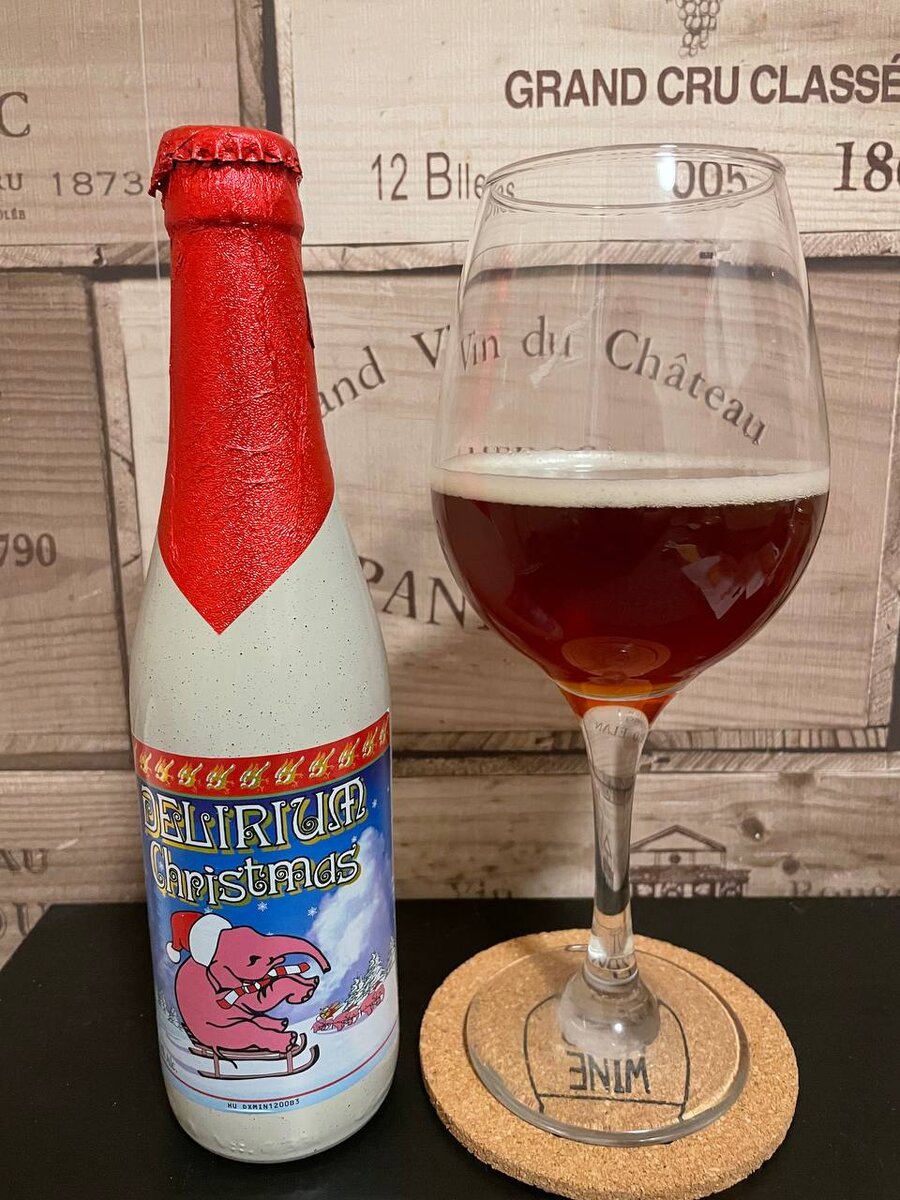 За этой бутылочкой я охотился на протяжении нескольких месяцев и могу сказать с уверенностью что это того стоило! Что вообще это за напиток и с чем его пьют? Сейчас расскажу! Delirium - это вид или сорт крепкого бельгийского эля крепостью от 8% до 10% (как раз в этой бутылочке все 10%🤓). Линейка Delirium насчитывает несколько позиций, но рассмотрим поподробнее именно эту бутылочку. Исходя из названия понятно, что она приурочена к Рождеству, но мне ее удалость выцепить только сейчас в октябрьскую прохладу, но это не никак не сказывается на вкусе напитка! Крепость: 10% Аромат: пахнет сладостью с небольшой кислинкой, чем-то напоминает рождественский пряник, и это при том что в составе нет никаких фруктово-ароматических добавок и сахара. Я очень удивлён как получилось добиться такой тонкой ароматики, не используя ничего кроме стандартных составляющих любого пива. Вкус: пьётся оно скорее как хорошее вино, кстати поэтому я его налил в винный бокал, а не в пивной стакан. Вкус очень тонкий