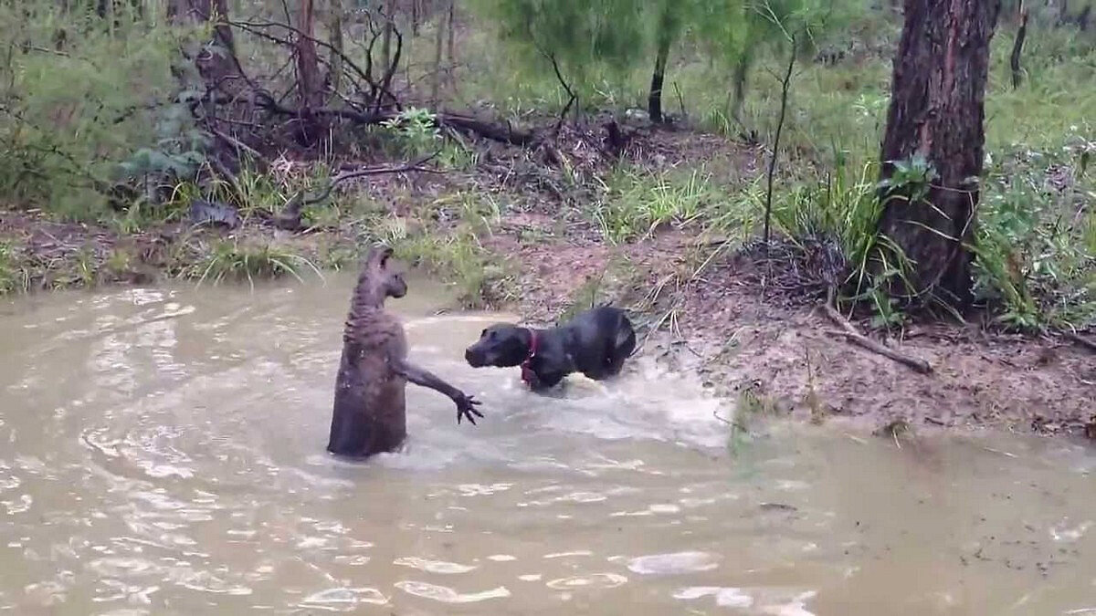 В Австралии кенгуру хотел утопить собаку и получил от хозяина «по жбану» Бывший полицейский из Австралии вступил в схватку с кенгуру, топившим его пса. Об этом сообщает Daily Mail. Мик Молони, увидев, что животное удерживает в воде его собаку, пошёл вброд к дикому зверю. Голова пса едва выглядывала из воды. «Я тебе сейчас по жбану дам. А ну отпусти мою собаку», — сказал австралиец и ударил кенгуру.