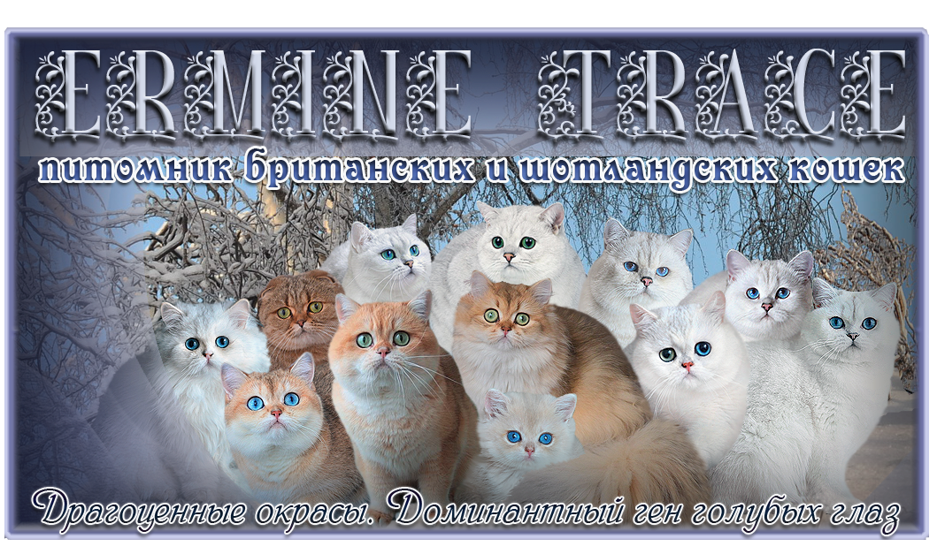 Наличия хотя бы одной племенной кошки уже достаточно, чтобы зарегистрировать питомник, поэтому я начала придумывать для него название. Думала, в общем, совсем недолго. Мне нравилось звучание английского слова Trace (след) - и понятно, что оставить этот самый след в фелинологии я планировала с помощью своей кошки, Weasel. Однако в русском варианте "След ласки" звучал не так поэтично, как "След горностая", да и по-английски "Weasel trace" звучал грубее, чем "Ermine Trace". А поскольку люди, не знающие английского, могли прочесть запись и вовсе как "Веазел" и "Эрмине", то тем более. В итоге остановилась на варианте "Ermine Trace".