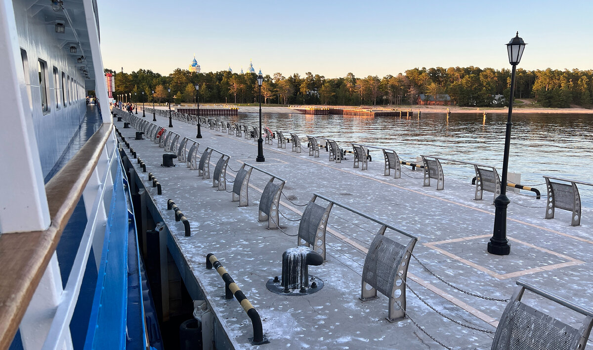 По Коневцу мы гулять не стали. Вышли к пристани, зашли в сувенирный магазинчик, осмотрели окрестности и отправились не спеша к кораблю. Полюбовались на наш теплоход с берега – самое красивое время было, когда солнце уже низко и все вокруг окрашивается в насыщенные тона...