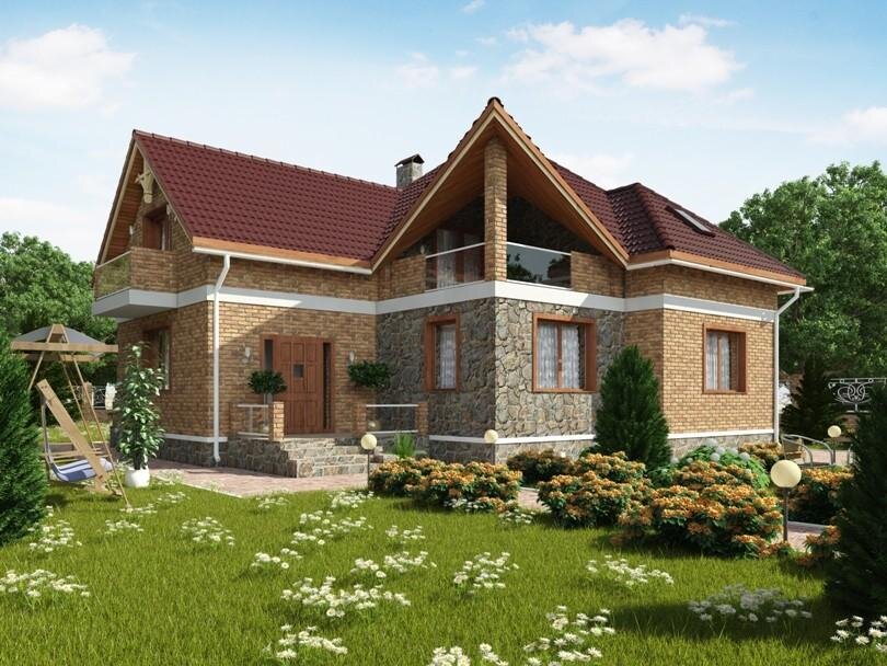 Большие семьи зачастую сталкиваются с проблемой выбора комфортабельного дома, в котором каждый член семьи сможет наслаждаться простором комнат, удобством планировки и эстетикой фасада. Проект дома «Кадевара» разработан специально для тех, кто уже отчаялся найти идеальный вариант! Семья из 6-10 человек по достоинству оценит внутреннее пространство: в этом коттедже предусмотрено 5 больших и светлых спален и два санузла, гарантирующих комфортное проживание каждому домочадцу. Кухня, гостиная и терраса создают все условия для полноценного отдыха в кругу семьи и друзей. Современный фасад, обшитый натуральным камнем и облицовочным кирпичом, привлекает внимание своей необычной геометрией. Особый шик внешнему облику придают многоскатная крыша сложной конфигурации, покрытая черепицей, и уникальный балкон треугольной формы с колонной. Площадь дома - 177 кв.м.