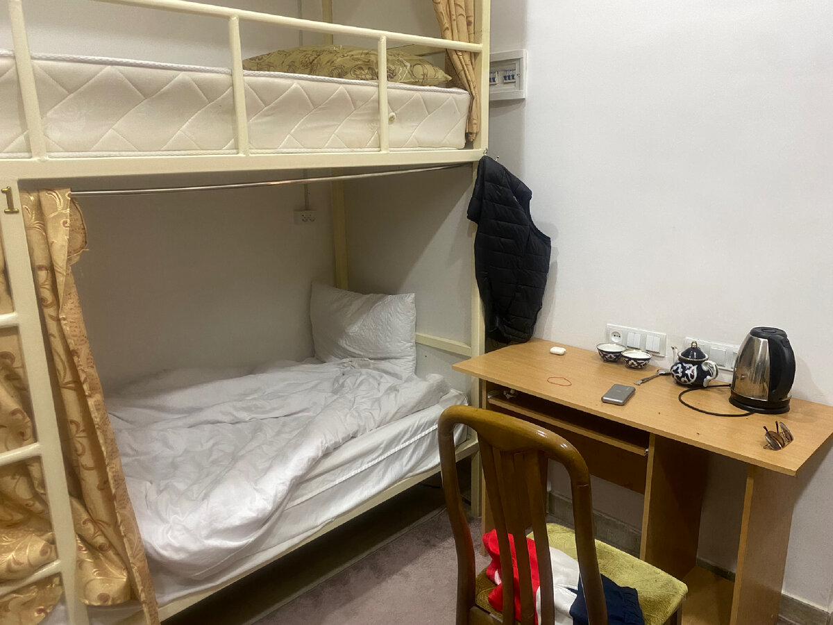 Предыдущая глава 15 октября. Воскресенье. В три часа ночи проснулся от того что кто-то мяучит под дверью. Плииз, плииииз я немного послушал, перевернулся на другой бок и снова уснул. Второй раз вздрогнул от открывающейся двери, приоткрыл шторку по комнате в полумраке шел китаец, с рюкзаком, в желтой вязаной шапочке стоящей торчком в виде колпака. Нашарил рукой телефон, на мониторе 03:30. Наверное это он пищал под дверью, подумал я, снова зарываясь в одеяло. Еще примерно пол часа китаец шебуршал в углу пакетами. Пока не свил себе гнездо. Будильник прозвенел в семь часов. Немного подремав поднялся. Вчера долго болтал с Аллой, пили чай делясь впечатлениями от Узбекистана. Путешественники могут говорить часами, представляю как проклинал нас турок решивший лечь спать пораньше. Но в десять часов и мы, поймав тишину разбрелись по своим хоромам задвинув шторки. Перед сном заварил себе кофе в термосе, чтобы утром не заморачиваться. Так что сейчас пью кофеек с булочкой. Почистив ост