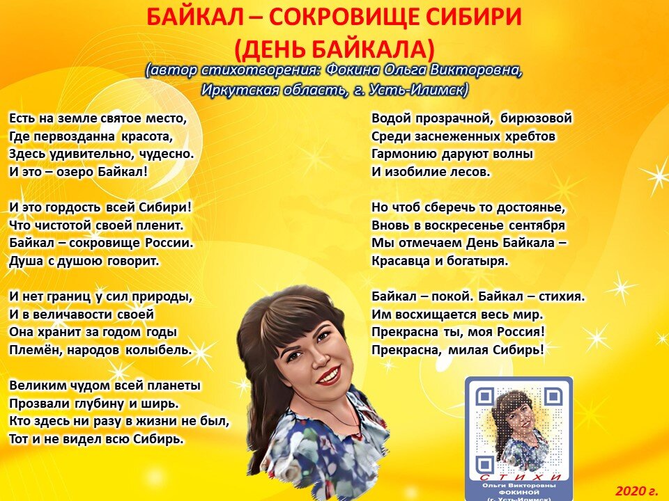 Байкал - сокровище Сибири (День Байкала) - стихи Ольги Фокиной (Усть-Илимск)