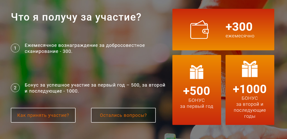 Хорошего дня, это уже вторая статья о данном сервисе, в которой я расскажу, как вы можете зарабатывать 300+ рублей в месяц на том, что будете сканировать свои покупки. И как и в прошлый раз, первое с чего начну, это скажу, что речь не идёт о сканировании чеков (хотя они вам понадобятся). Речь идёт именно о сканировании покупок. То есть придя из магазина с сумкой продуктов, вы сканируете их в приложения, за что раз в месяц получаете 300 рублей. А при условии, что будете сканировать и, так называемые покупки "вне дома" (еда из/в ресторанов, покупки съеденные на ходу), вы будете получать ещё 150р. за каждого члена семьи, который будет это делать и подходит под условия программы. У меня таких в семье двое, но один постоянно забывает это делать, поэтому за покупки "вне дома" моя семья получает 150р. в месяц. Плюс, при условии того, что у вас нет пропусков за первый год вы получите ещё 500р. за второй и все последующие вам будут платить ещё по 1000р., и так до тех пор, пока вы участвуете в