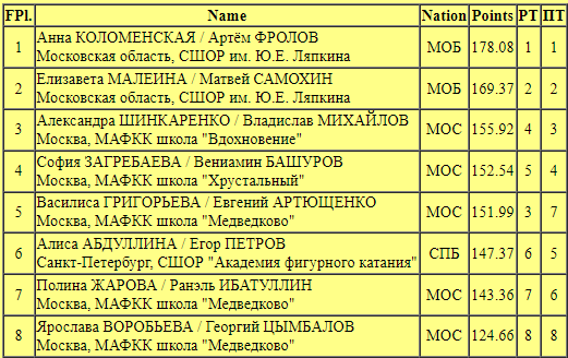 Свой последний юниорский сезон в силу возраста проводят Анна и Артем, в котором они судя по баллам вполне могут оказать конкуренцию и Щербаковой/Гончарову, и тем более Рыбаковой/Махноносову.