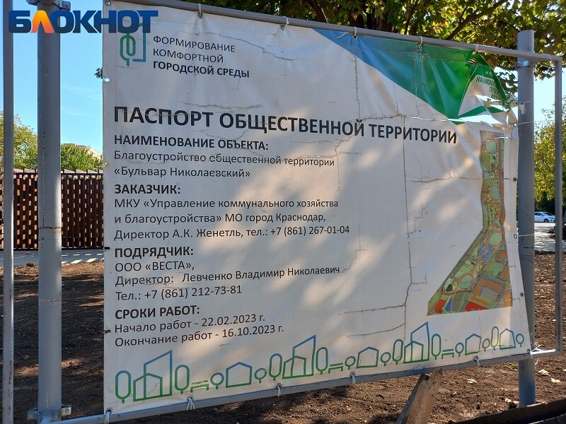 Как стало известно 19 октября, администрация Краснодара оправдалась за пропущенные сроки сдачи Николаевского бульвара в микрорайоне Гидростроителей. В МЦУ краевого центра назвали причину затянувшихся работ по благоустройству зелёной зоны. Заказчик работ в Николаевском бульваре, МКУ «Управление коммунального хозяйства и благоустройства», сообщил, что нарушений сроков сдачи объекта со стороны подрядчика ООО «Веста» нет. Оказывается, муниципальный контракт действует до 14 ноября, а не до 16 октября, как было указано в паспорте общественной территории. Паспорт объекта, который уже убрали