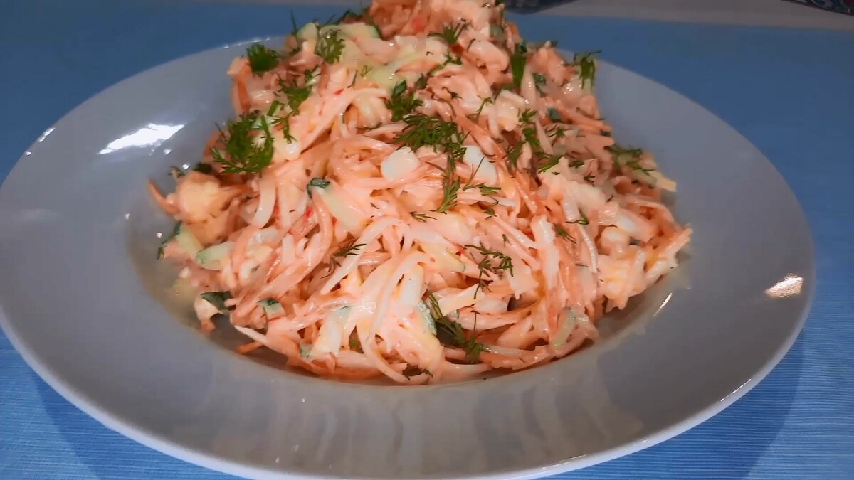 За 5 минут, в одной посуде салат "Улётный". Он настолько вкусный, что со стола улетает моментально.