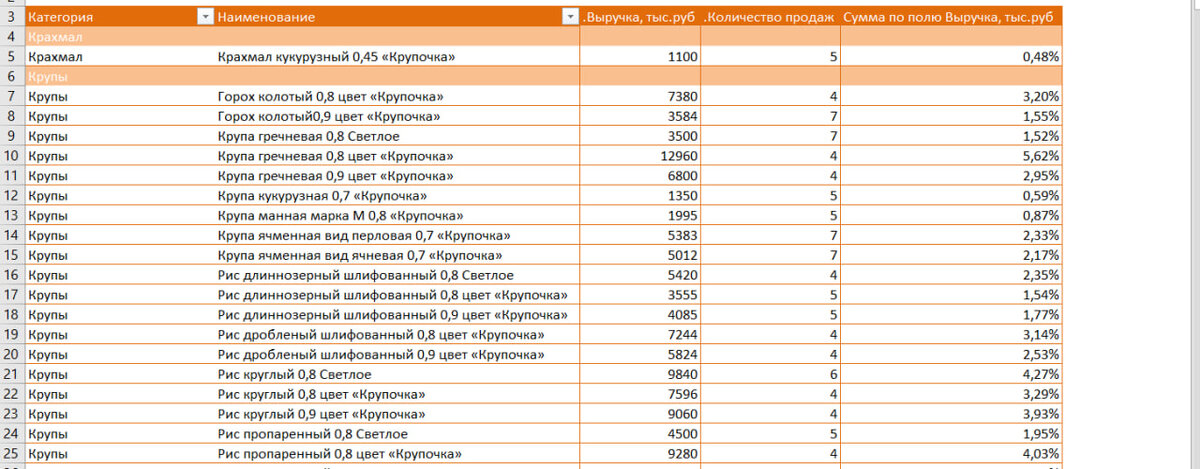 Продолжаем тему о вариантах дополнительных вычислений. Кроме рассмотренного варианта могут быть интересными следующие. Если выбрать % от общей суммы, то в последнем столбце будет представлен % по каждому наименованию к Итогу по по продажам в денежном выражении. *** Из возможных для анализа в компании может быть такой вариант, как % нарастающим итогом: Мы выберем Базовое поле Но перед этим в Конструкторе выберем: Показывать промежуточные итоги в заголовке группы Выбираем Наименование. % будет рассчитан к сумме выручки по Итогу каждого Наименования. При выборе Категории результат будет нарастающим только в строках с наименованием Категории. Продолжение по дополнительным вычислениям