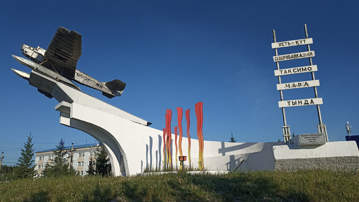 В 6.10 проснулся. Поезд стоит на станции Таксимо. По меркам БАМа это большой посёлок, здесь проживает более 7 тысяч человек.. Отсюда начинается дорога на север – в Бодайбо, к золотым приискам. Наташа продолжала спать, а я вышел и прогулялся до памятника самолету АНТ-4. БАМ ведь начали строить еще до войны. Для проектных изысканий работала специальная авиаэскадрилья аэрофотосъемки. В 1940 г. она насчитывала 26 самолетов, среди которых два тяжелых АНТ-4. Они обеспечивали работу изыскательских партий в Муйской и Чарской долинах, на Баргузинском, Северомуйском, Удоканском хребтах, во многих других районах по всей трассе. И 1940 году оба эти самолета разбились. Один в августе – тогда погибли все находившиеся на борту. Второй в декабре – экипажу чудом удалось выжить, хотя многие были ранены. Через пять дней их нашла спасательная экспедиция и эвакуировала. В память о погибших при изысканиях трассы БАМа летчиках, геологах и изыскателях, недалеко от вокзала Таксимо и был установлен памятник –