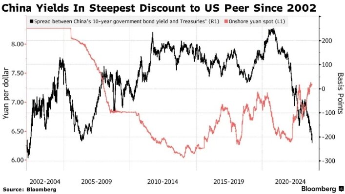 Трейдеры по юаню обеспокоены самым большим разрывом в доходности Китая и США с 2002 года
