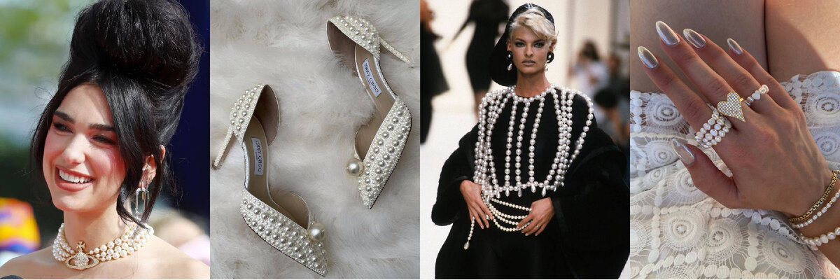 Когда речь заходит о наших любимых тенденциях, жемчуг занимает в них самое видное место. И именно в этом году в сети завирусился новый тренд под названием "pearlcore". Как вы могли догадаться, он стал логичным продолжением "mermaidcore", который еще летом успел заполонить все возможные социальные сети. К слову, "pearlcore" также хорошо вписывается и во всеми любимую "тихую роскошь". На самом деле, каких-то особенных нюансов у этого тренда нет - модные инфлюенсеры просто рекомендуют добавлять один или два предмета с жемчугом в ваш образ. Это могут быть аксессуары, платья, блузы, туфли и так далее. И как вы могли заметить, в последнее время в спортивные образы часто добавляют либо очень объемные украшения, либо жемчужные, и на контрасте получается очень красиво! Особенно со свитшотами oversize и толстовками на молнии (которые сейчас так же пользуются огромной популярностью). Так же нравится, как жемчуг дополняет изначально базовые образы, к примеру, с футболкой или лонгсливом. Вдохнов