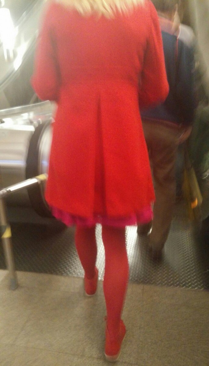 1. Если кто не знал, то красный цвет главный 2023 года. Обычно если не хватает вникания, то в свой образ человек добавляет что-то красное. Красный цвет не заметить просто невозможно. Наверняка этой женщине как раз не хватало внимания. Так она получает его не только от мужчин, но и от женщин. Поэтому она всего скорее вся и приоделась в яркий цвет. Даже обувь и то красная. Хотя может быть просто красный ее любимый цвет.