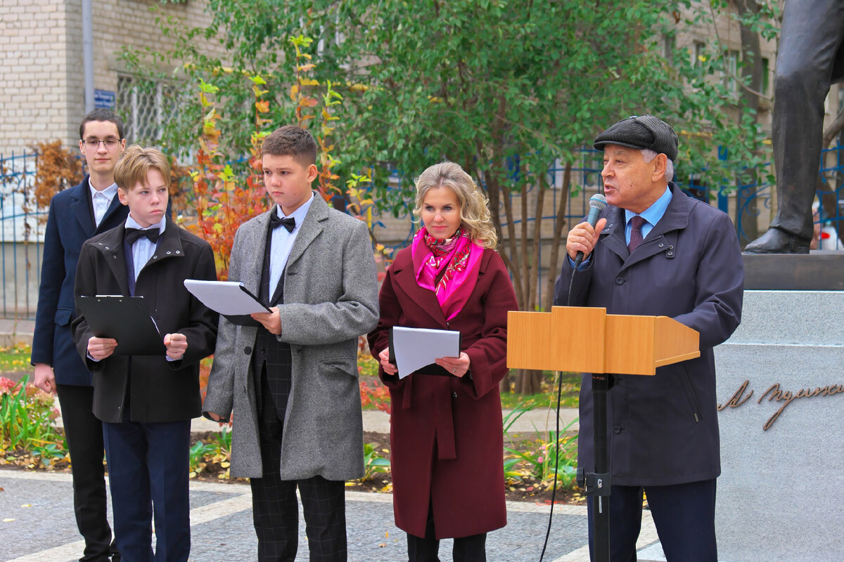 В Казани в особенный год 190-летия пребывания в нашем городе Александра Пушкина открыли еще один памятник классику! Монумент установлен на территории Гимназии №93, которой присвоено имя поэта. Торжественное событие состоялось 18 октября в преддверии Всероссийского дня лицеиста, который ежегодно отмечается 19 октября в день основания в 1811 году Императорского Царскосельского лицея. На церемонии открытия собрались представители власти и общественности. Конечно, коллектив Культурного центра имени А.С.Пушкина с радостью поучаствовал в событии! В церемонии приняли участие Сенатор Российской Федерации от Республики Татарстан Александр Терентьев, Председатель Государственного Совета РТ, Председатель Совета Ассамблеи народов Татарстана Фарид Мухаметшин, заместитель начальника Управления по реализации национальной политики Департамента Раиса РТ по вопросам внутренней политики Администрации Раиса РТ Евгений Ефимов, заместитель министра культуры РТ Ленар Хакимзянов, директор Дома Дружбы народов