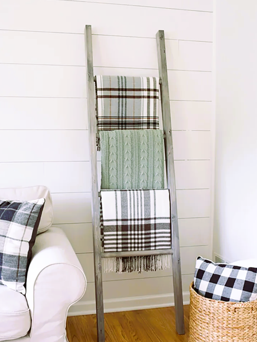 Это интерьерный ход, который подарит дому особенную атмосферу скандинавской стилистики. Не обязательно покупать ненужную лестницу или мастерить ее, можно воспользоваться той, что уже есть, например на даче или в гараже.