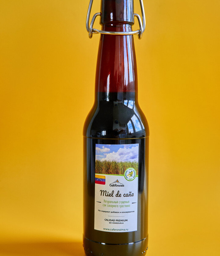 Тростниковый сироп (miel de caña) – на 100% натуральный продукт, без вкусовых добавок и консервантов. При этом обладает ярким, оригинальным вкусом, с карамельными нотками и многообразным ароматом тропического разнотравья. Использовать его можно как подсластитель для горячих и холодных напитков, для выпечки, кондитерских изделий, приготовления соусов и т.д. Всё зависит от полёта фантазии повара. Процесс приготовления тростникового сиропа практически идентичен приготовлению панелы. Отжатый из стебля сахарного тростника сок наливается в большой чан и вываривается до определённой густоты, затем фильтруется и остывает. Вся разница в степени выпаривания жидкости из сока, сироп содержит чуть больше жидкости и потому при остывании не затвердевает окончательно, как панела. В итоге получается густая жидкость тёмного цвета, по консистенции похожая на мёд. Что касается полезных свойств тростникового сиропа, тут мы обнаружим целый букет витаминов и микроэлементов. Особенно широко представлены витам