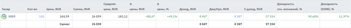 В общем, вот какие у нас результаты по обычным акциям Сбера:
