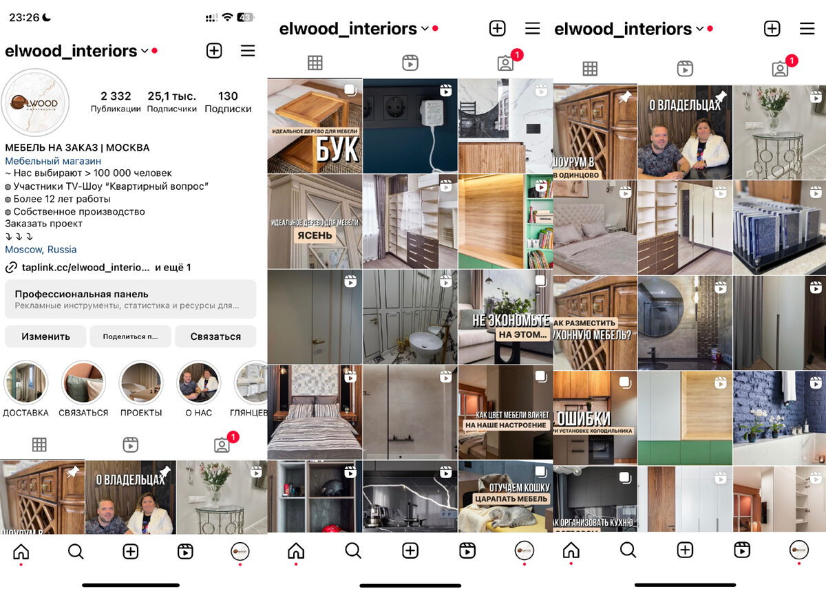 Глаза боятся руки - делают или как расскачать аккаунт! В мае я беру проект мебельного магазина с собственным производством и полностью меняю стратегию продвижения. С чем пришел клиент: Клиент пришел со всем “пакетом” соцсетей, велись они не регулярно и с полным отсутствием стратегии. Запрос клиента: Какую работу мы проделали: Работу я начала с анализа конкурентов и анализа ЦА, так как аккаунт был уже минимально упакован. Далее с командой мы разработали маркетинговую стратегию и придерживались ей несколько месяцев, чтобы расскачать аккаунт и сдвинуть с места показатели статистики. Результаты работы за 4 месяца: Каждый месяц мы получаем от 15 до 40 заявок со всех соцсетей. За 2 месяца полностью переупаковали инстаграм и при переходе на аккаунт понятно, что это за компания, что можно купить и куда можно для этого обратиться. Вышли на стабильный постинг. В инстаграм пришло 1848 новых подписчиков. Увеличили охваты на сторис в 4 раза. Расскачали Рилс, что с них приходит большая часть подпис