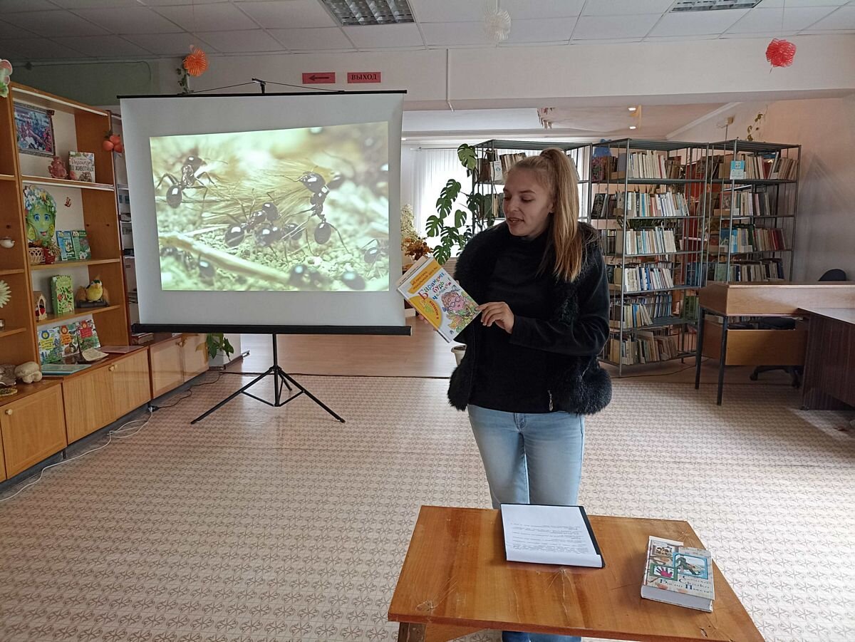 Наконец вступила в свои права удивительная пора – прекрасная и нежная осень. Она дарит еле уловимый аромат ярких осенних цветов и последние теплые деньки. А что происходит в лесу и в парках? Чтобы ответить на этот вопрос, учащиеся совершили виртуальную прогулку, которая открыла неприметный и негромкий мир насекомых. Главной целью этой прогулки стало знакомство с крошечными жителями – муравьями. 19 октября, в рамках клуба «Школа экологических наук», в библиотеке-филиале № 5 прошел час экологической грамотности «Вот я, вот я превращаюсь в муравья» для учащихся МБОУ СОШ № 5 с кадетскими классами имени А. Губина. Ребята узнали много интересных фактов из жизни муравьев и муравьиной семьи. Закрепили материал просмотром фильма «Муравей». Познакомились с повестью замечательного детского писателя В. В. Медведева «Баранкин, будь человеком!» и посмотрели смешную сценку о приключениях двух друзей – школьников Юры Баранкина и Кости Малинина, которые захотели попробовать себя в роли воробья, бабочки