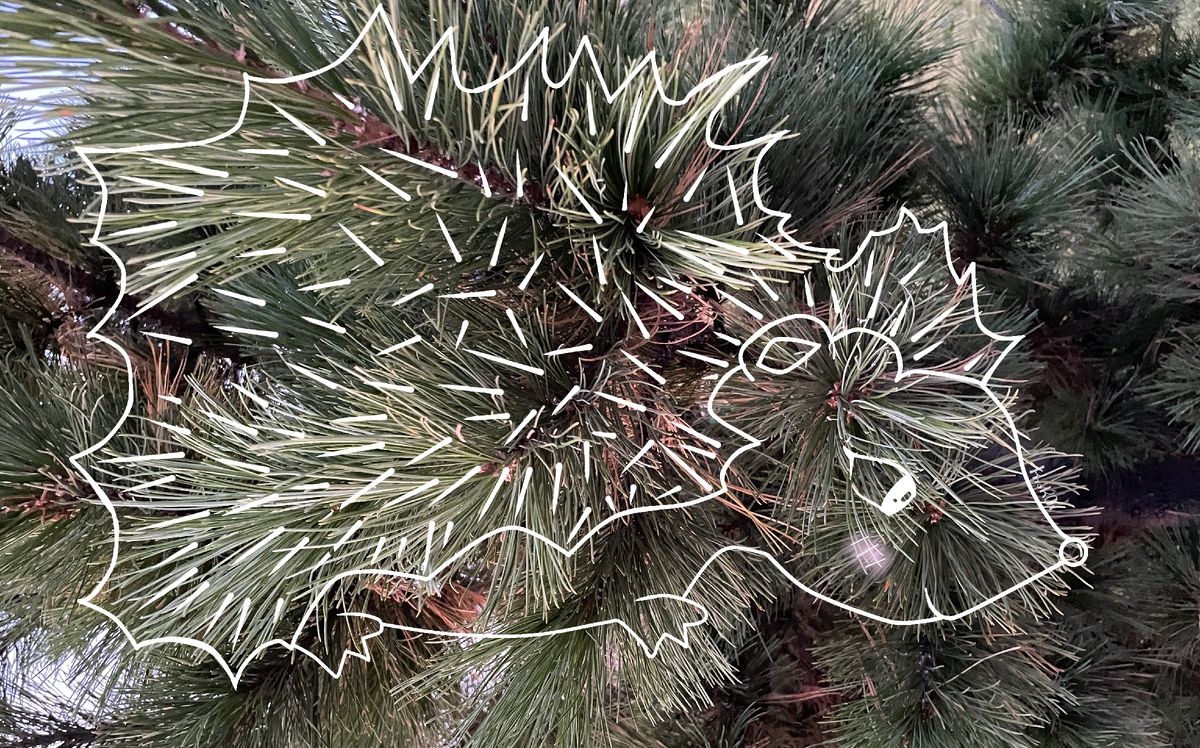 Здесь я решила посмотреть не с одинарной точки зрения. Сфотографировала колючую сосну и увидела в ней милых ёжиков!
