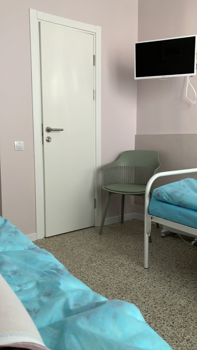 Приехала в клинику натощак к 9:00, меня отправили в палату , рассчитана она на двух человек , но я была одна , в палате есть туалет и телевизор.
