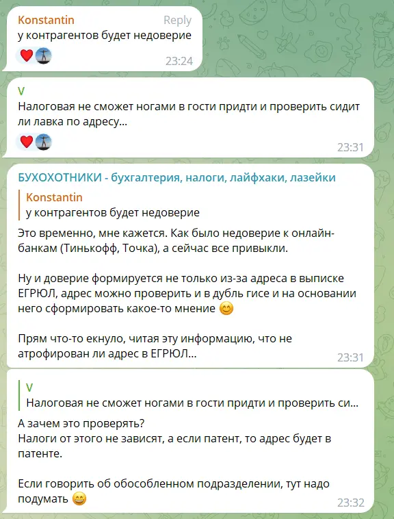 На днях об этом вышел законопроект. И мне сначала показалось - «Да ну, вряд ли откажутся от реального адреса в пользу e-mail». А потом подумала - «А почему нет? Какие минусы и препятствия этому?» Будет рост однодневок? А чем именно они сейчас могут угрожать? ⁃ Все входящие деньги по фирмам давно контролируются; ⁃ Переводы между контрагентами жестко отслеживает 115-ФЗ; ⁃ Былые оптимизации по НДС полностью сошли на нет; ⁃ Кроме адреса, есть ещё целая куча параметров фиктивности сделок. Что может ещё однодневка? Видите хоть одну причину считать этот законопроект не перспективным в будущем? 😊 А какие аргументы и контраргументы есть у вас? Больше комментариев в тг-канале.