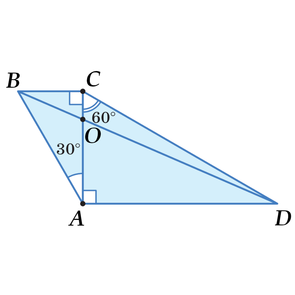 Задача: Диагональ трапеции перпендикулярна основаниям и образует с боковыми сторонами углы 30° и 60°. В каком отношении делит её другая диагональ трапеции? ©Математическая Вертикаль. Учебное пособие для общеобразовательных организаций. Автор: М.А.Волчкевич. Решение: Диагонали трапеции делят друг друга на отрезки, пропорциональные её основаниям ⇒ CO/OA = BC/AD. Найдём отношение BC и AD: В прямоугольном треугольнике △BCA: BC = AC * tg(30°). В прямоугольном треугольнике △CAD: AD = AC * tg(60°) ⇒ BC/AD = (AC * tg 30°)/(AC * tg 60°) = (1/√3)/√3 = 1/3 ⇒ CO/OA = 1/3. Ответ: 1/3. Задача решена.