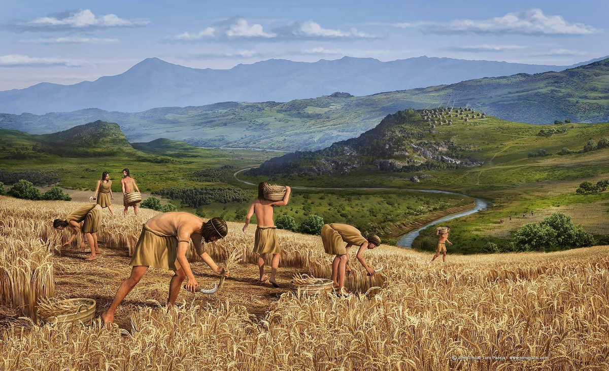 Примерно 1000 лет спустя все неолитические "основные культуры" — пшеница эммер, пшеница эйнкорн, ячмень в шелухе, рожь, горох, чечевица, горькая вика, нут и лен — выращивались на территории, которая сейчас называется Плодородным полумесяцем.