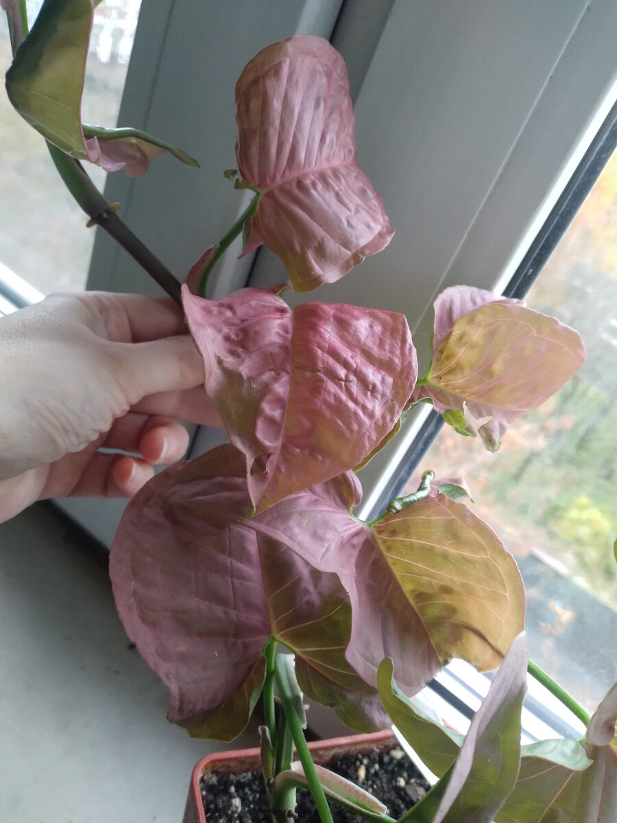 Здравствуйте, вот и минус за окном 🥶. Может снегу я могу и радоваться, а холоду нет. Зато сингониум в прекрасном настроении, летом он не такой яркий, а сейчас так красиво распушился, такой эффектный))