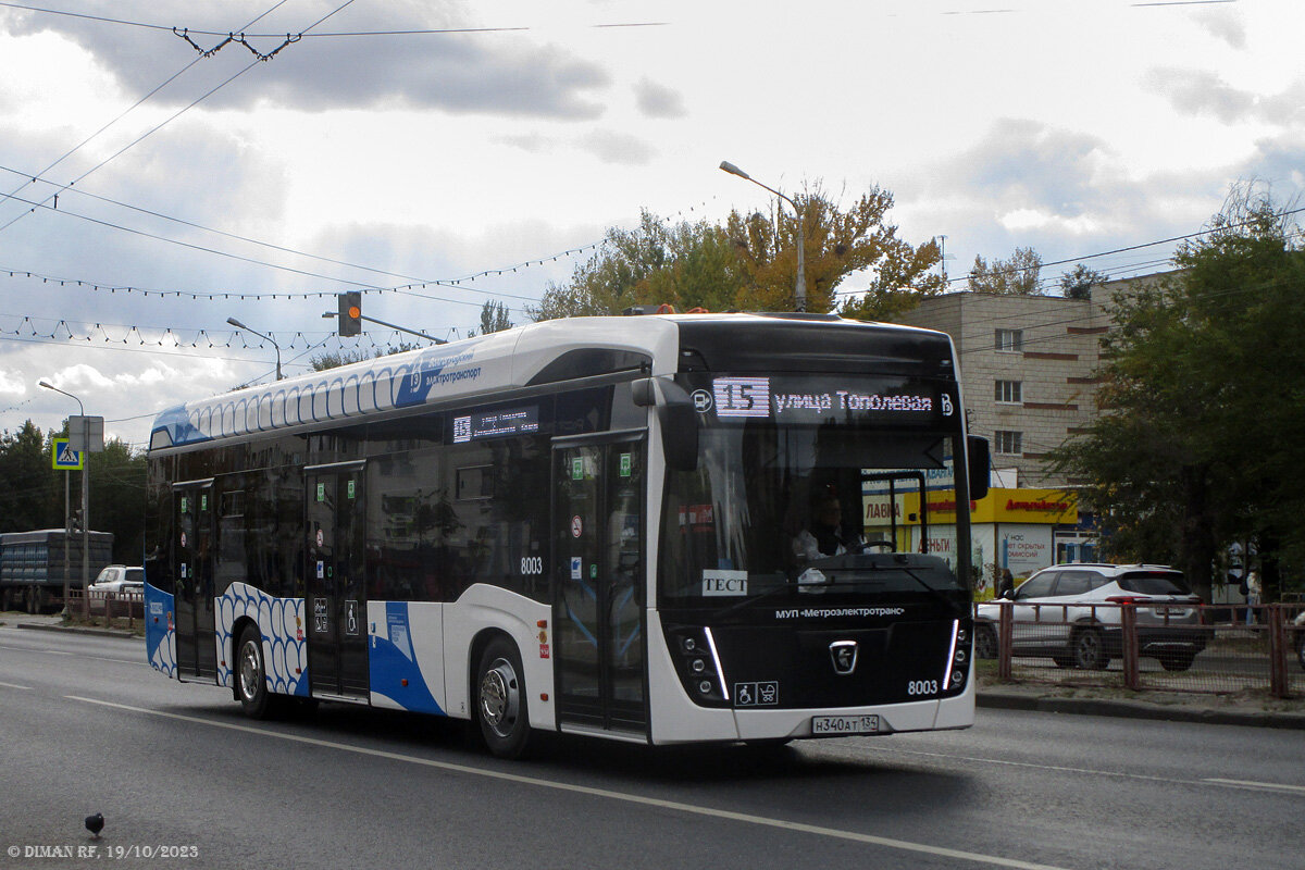 В Волгограде состоялась презентация новых электробусов, которые в ближайшее время приступят к работе. Первые 10 машин уже прошли регистрацию в ГИБДД и проходят тестовую обкатку. На маршрутных указателях новых электробусов уже значится новый номер маршрута № 15, но фактически обкатка проводится по трассе маршрута № 18 «Улица Тополёвая — Обувная фабрика». По полному маршруту до железнодорожного вокзала электробусы поедут к концу года. Передние электронные маршрутные указатели настроены по новой моде так, чтобы отображались только номер маршрута и конечная. Любопытно, что электробусы получили бортовые номера, которые начинаются с цифры 8. Если ранее троллейбусы нумеровались с первой цифры, обозначающей номер депо (1, 3, 4, 6), то с ликвидацией депо № 1, № 3 и № 6, а также преобразованием оставшегося депо № 4 в безномерной троллейбусный парк, нумерация троллейбусов потеряла логику. Окончательно логика была утрачена, когда партия троллейбусов с автономным ходом получила бортовые номера, на