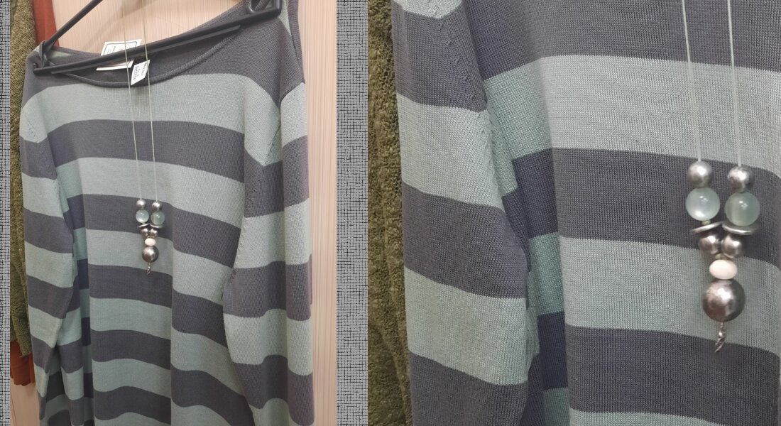 Вот кофточка на первом снимке! Как же не взяли, если на ней мое украшение всем известное? Да мы в нем в магазин заявились. А когда вот так происходит, еще больше купить хочется! Вроде бы все создано друг под друга, но не взяли. На этот раз из за пятнышка на видном месте Опять тот самый модный цвет? Полынь или как там его. Полынь и тучи... я бы сказала так... Кое у кого кардиган полынь и молочные облака, а... у нас она с тучами...и пятном. Решающее значение имела не погода, а пятно...